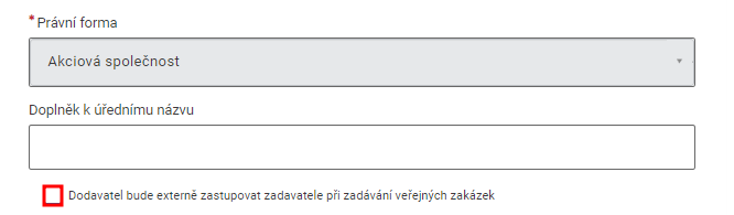 v případě, že budete vystupovat jako externí administrátor, je nutné přiložit čestné prohlášení externího administrátora, ke stažení z bloku „Dokumenty ke stažení“. Zobrazuje se, pokud je nastavena volba „Dodavatel bude externě zastupovat zadavatele při zadávání veřejných zakázek“ na „fajfku“,