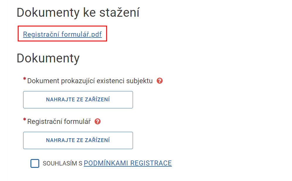 Subjekty registrující se se sídlem v ČR, vyplňte Registrační formulář pro české subjekty..