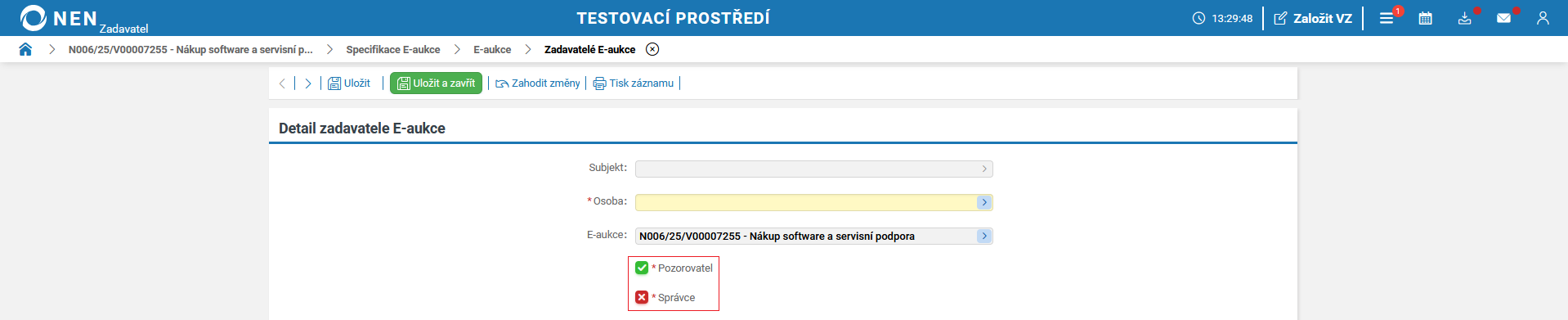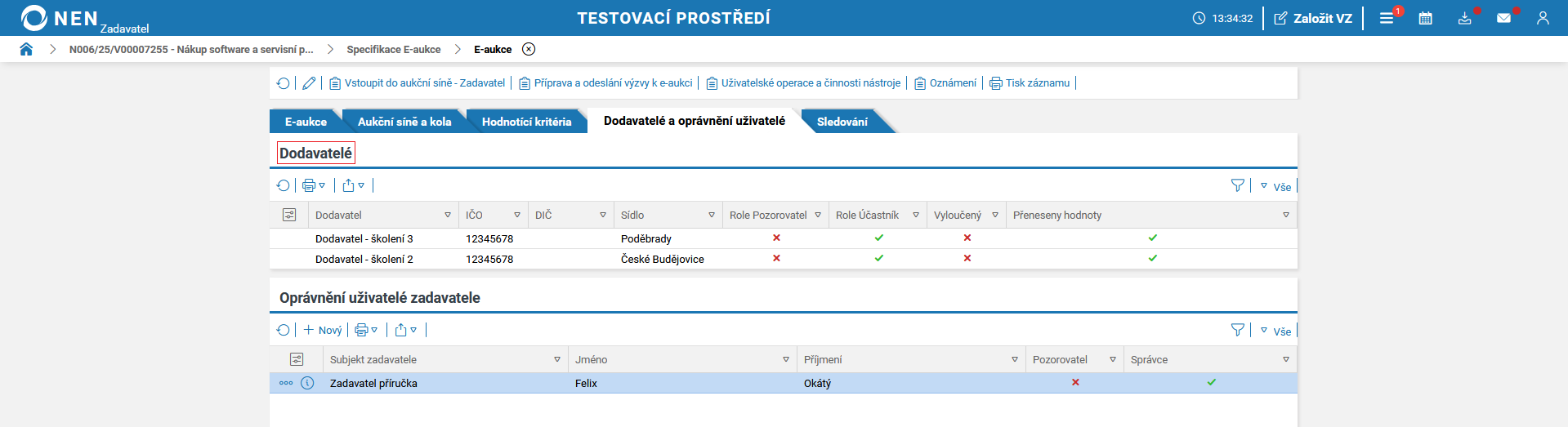 Systém NEN zobrazí v horní liště tlačítko „Příprava a odeslání výzvy v e-aukci“ a umožní tak oslovit konkrétní dodavatele. Příprava a odeslání výzvy je zcela totožná jako při odeslání výzvy k podání nabídek.