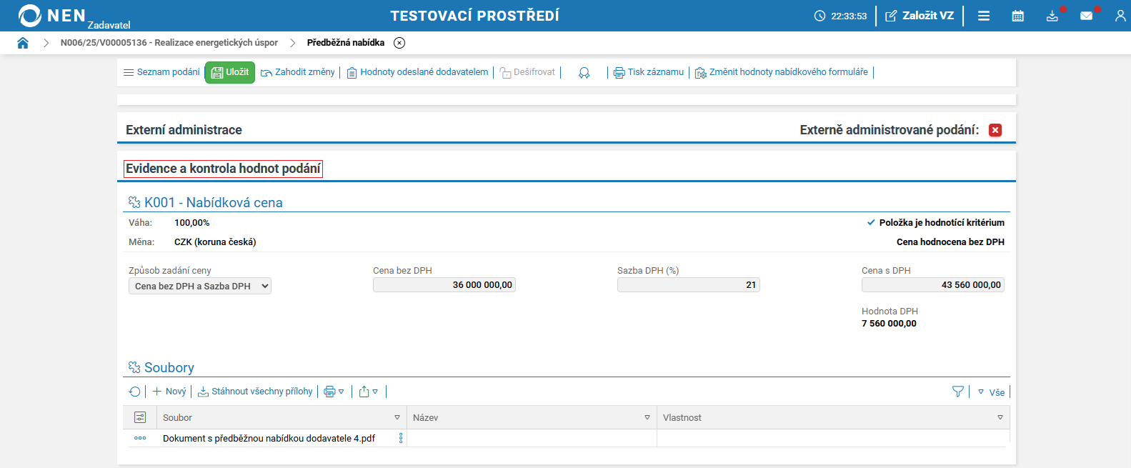 Po zahájení následující fáze systém NEN zobrazí blok „Nabídky”.