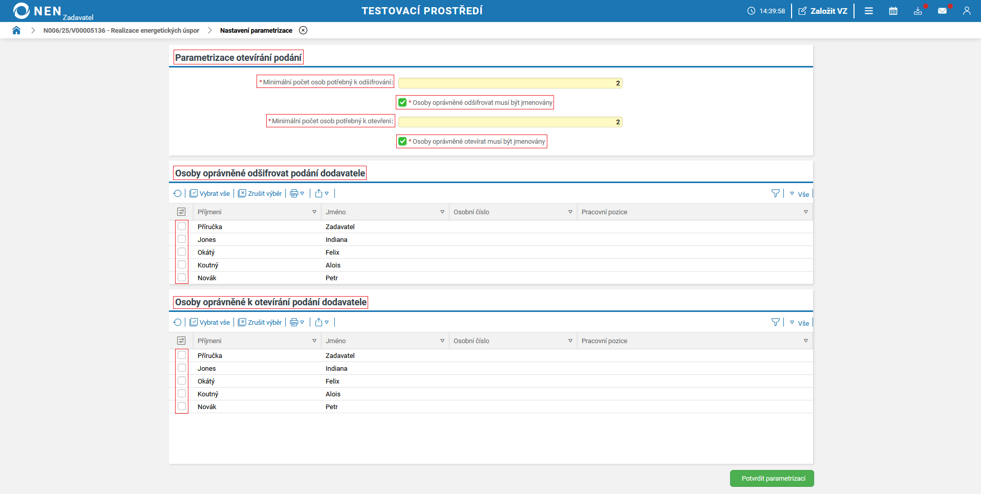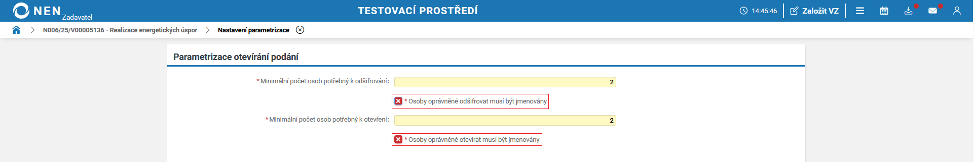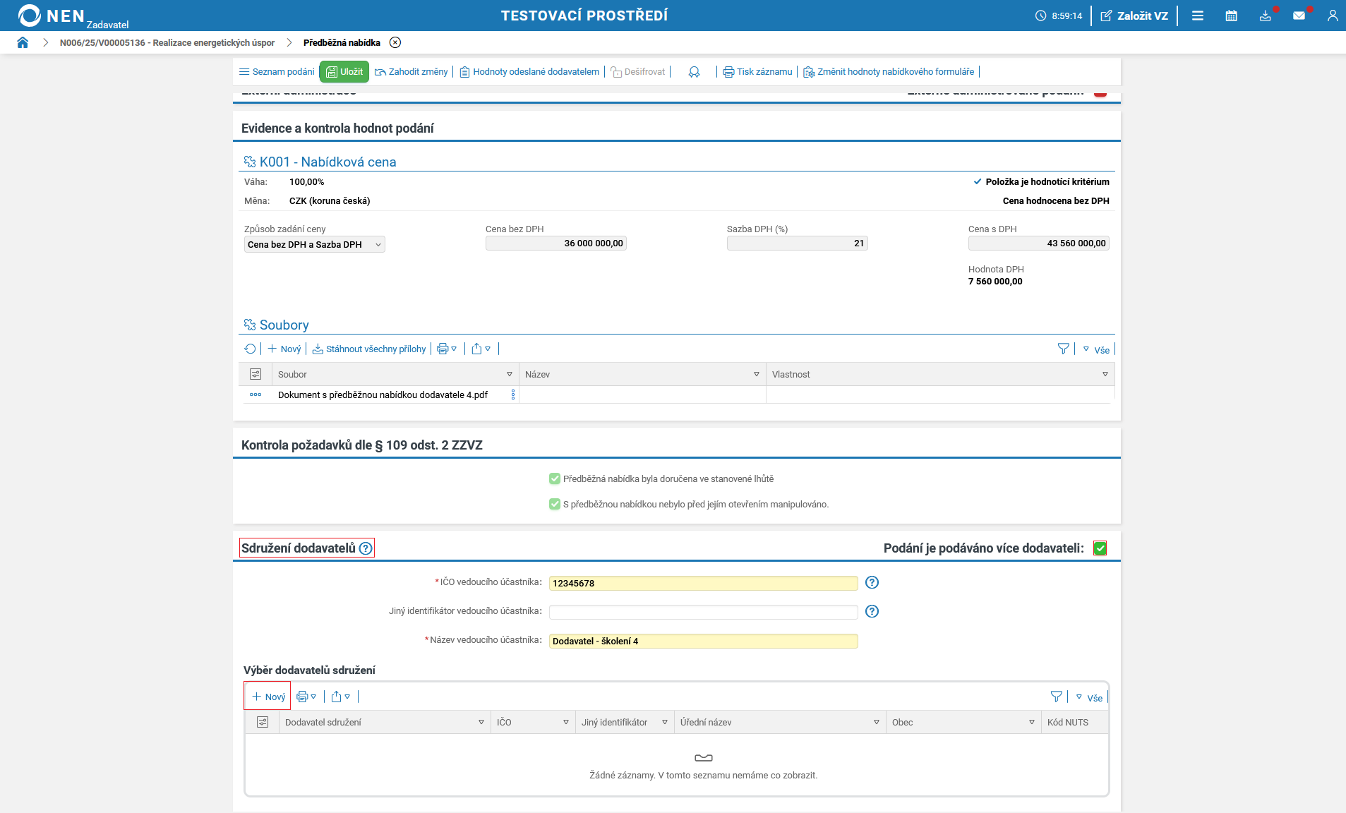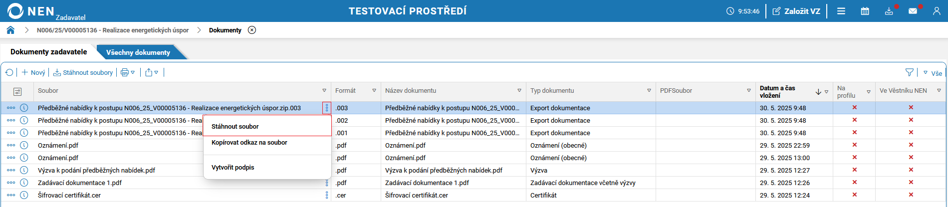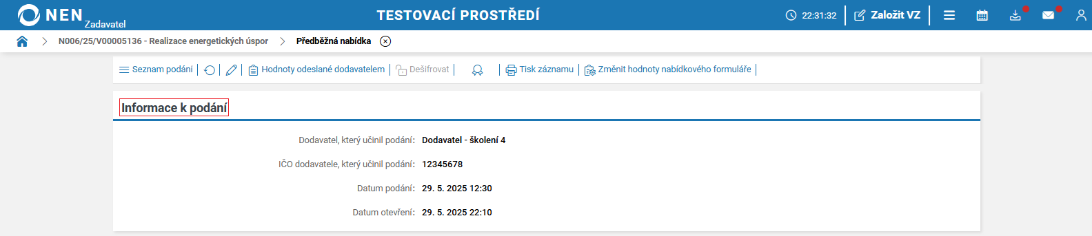 Informace týkající se otevírání nabídek, naleznete v článku Otevírání podaných nabídek.