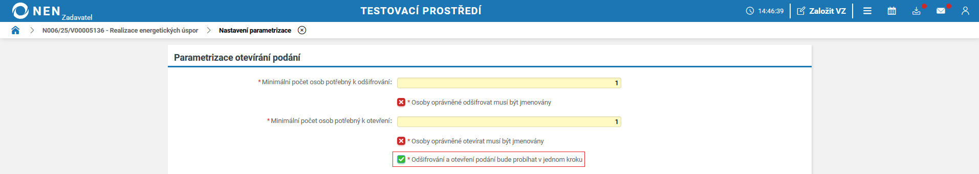 V případě jednacího řízení s uveřejněním bez uveřejnění máte možnost si dle § 61 odst. 9 ZZVZ vyhradit, že nemusíte o předběžných nabídkách jednat a můžete zadat veřejnou zakázku na základě předběžné nabídky. Systém NEN proto nabízí checkbox „Využije zadavatel právo nejednat o předběžných nabídkách?”.