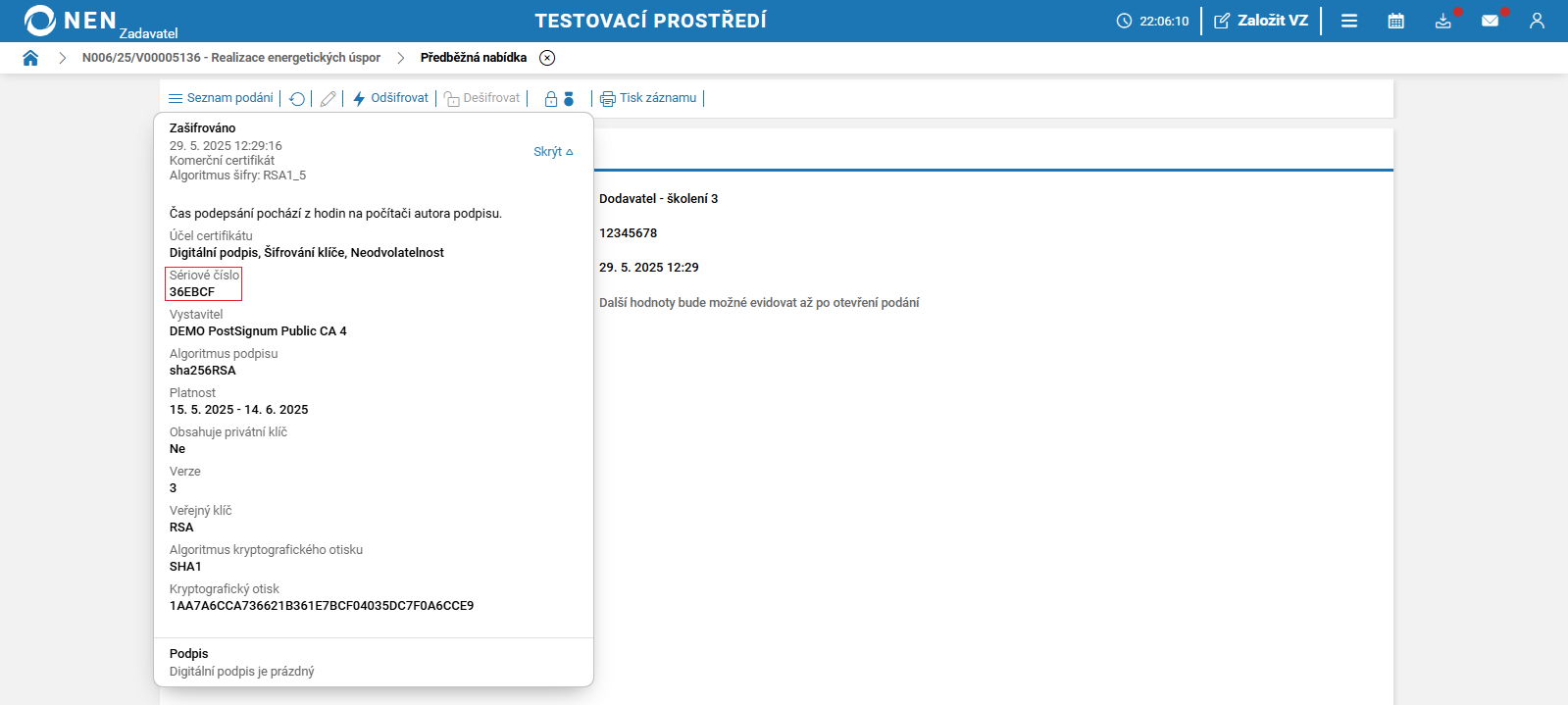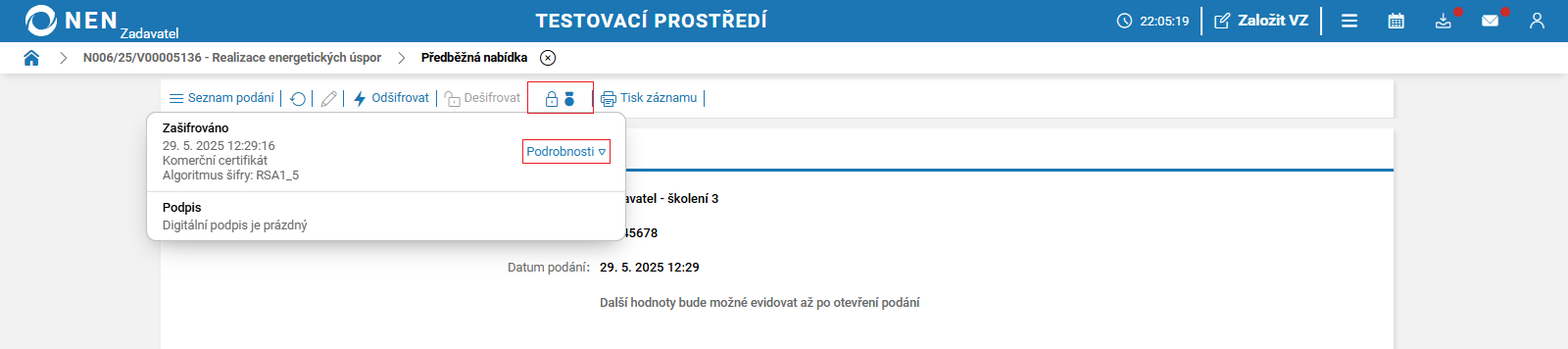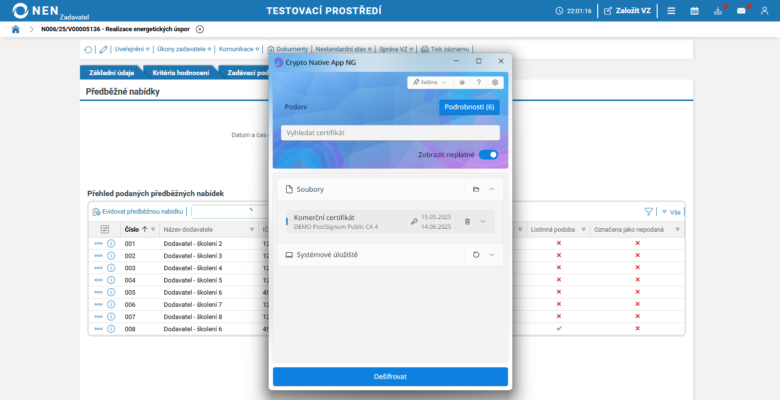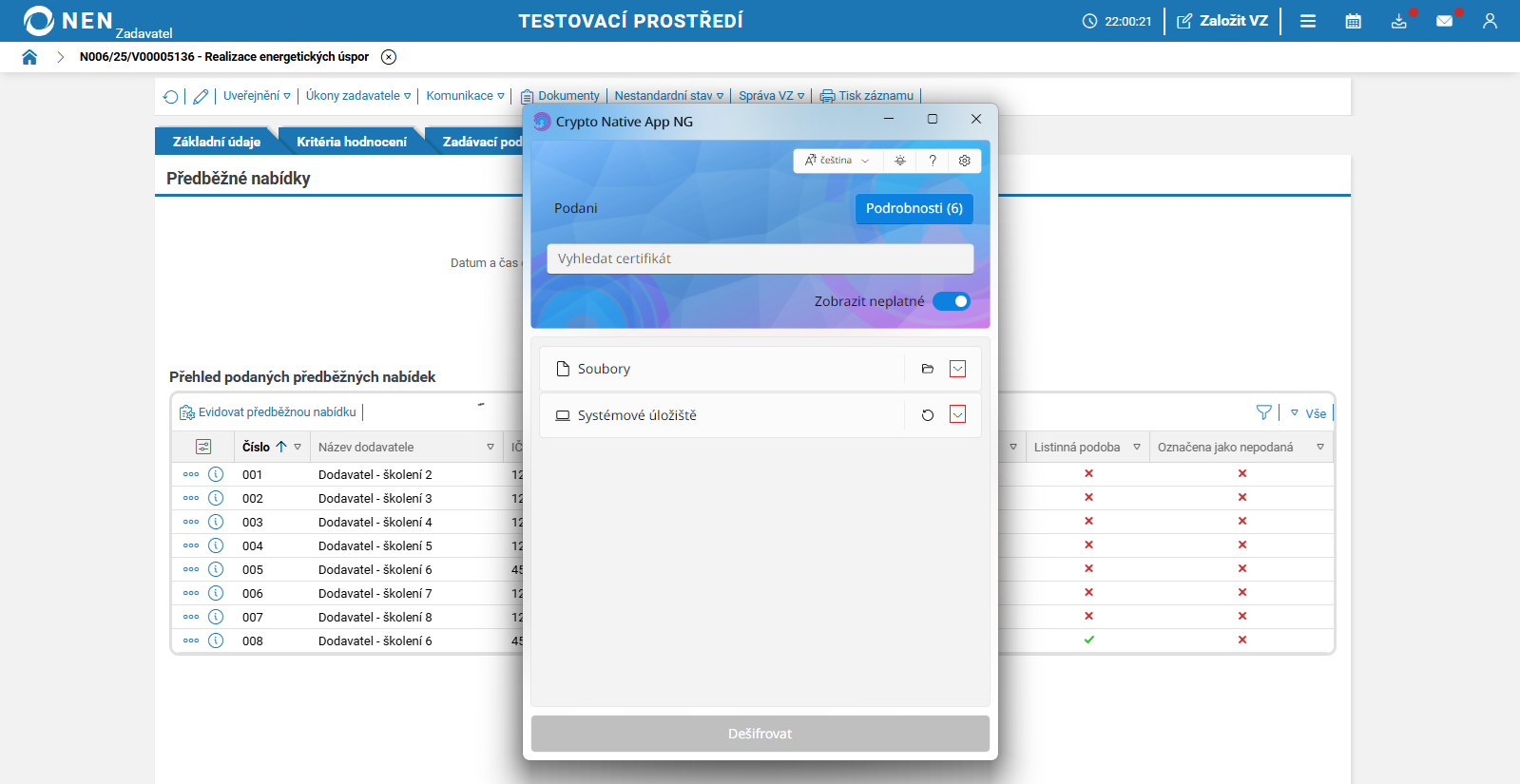 Dešifrování a otevírání předběžných nabídek (JŘSU bez uveřejnění)