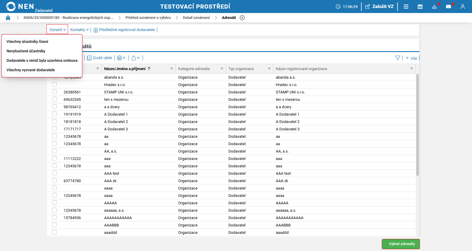 Tento úkon potvrďte tlačítkem „Vyber dodavatele“, které se nachází v pravém dolním rohu.